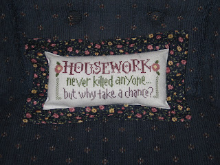 This afternoon I did get a chance to finish Housework Never Killed into a flange pillow. I think it turned out pretty cute.